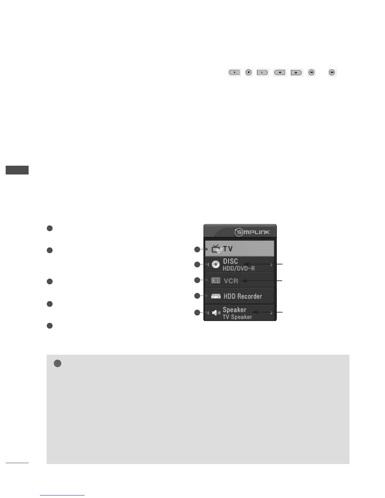 If SIMPLINK is operated, the keys such as stop / play / pause / fast reverse / fast forward / chapter skip
