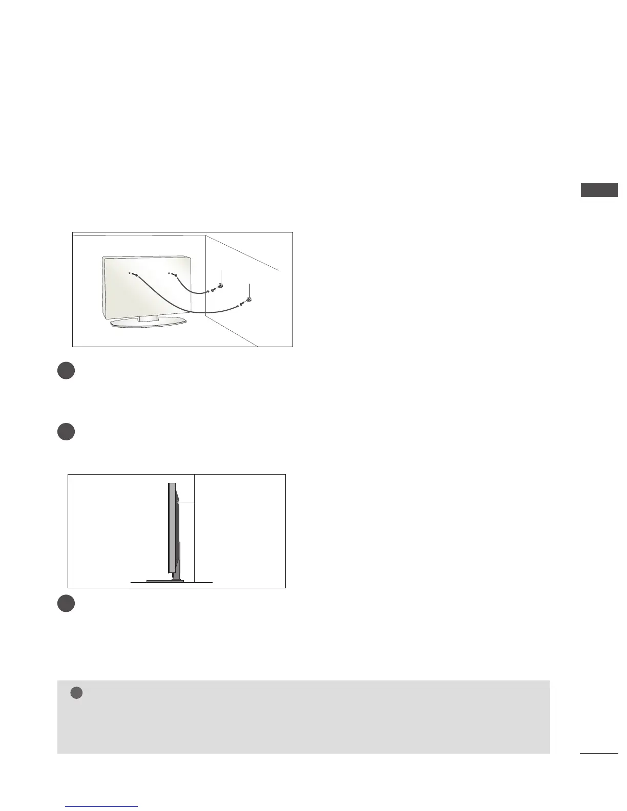 The instructions shown below are a safer way to set up the TV, which is to fix it to the wall, avoiding the possi-
