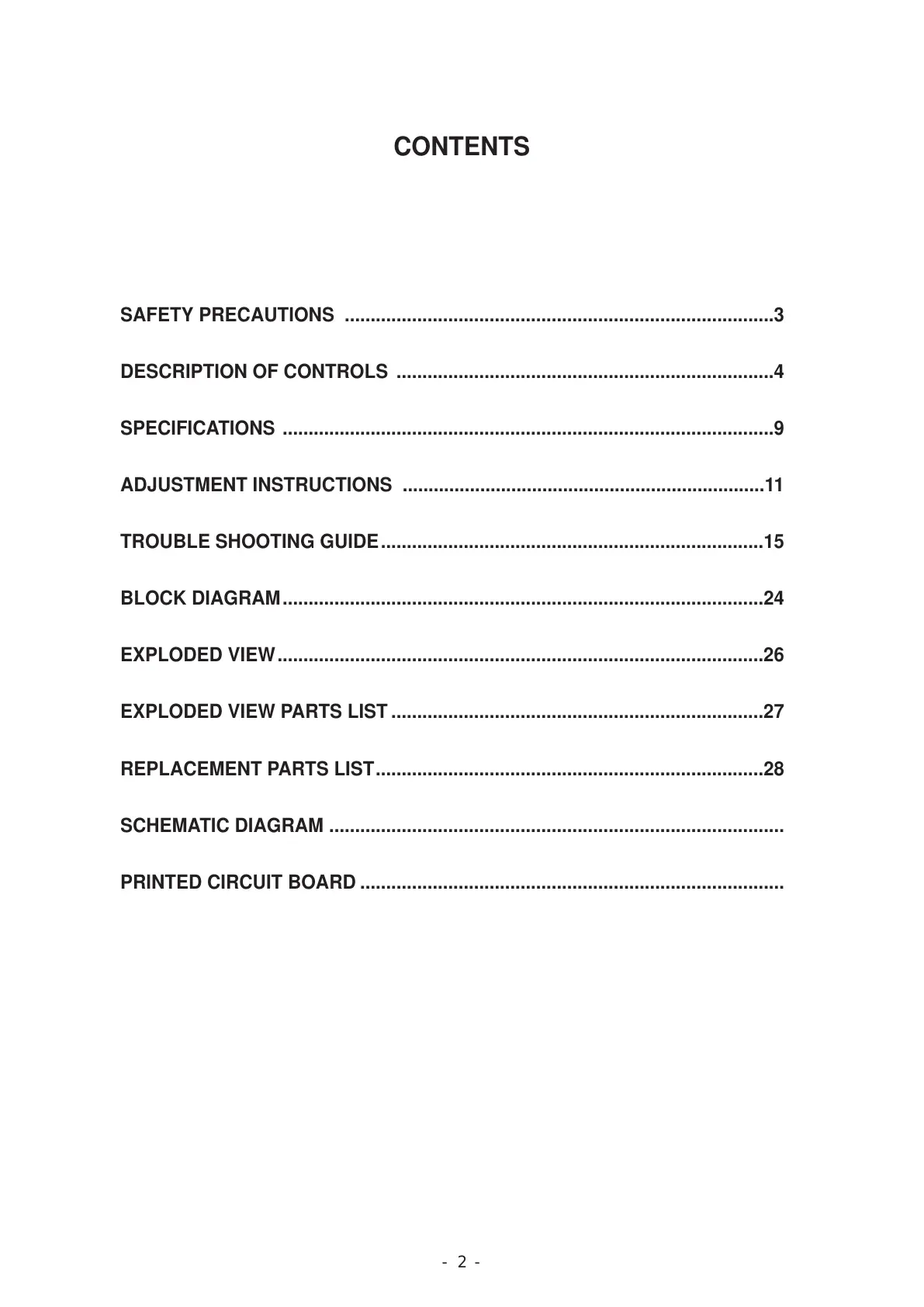 EXPLODED VIEW PARTS LIST ........................................................................27