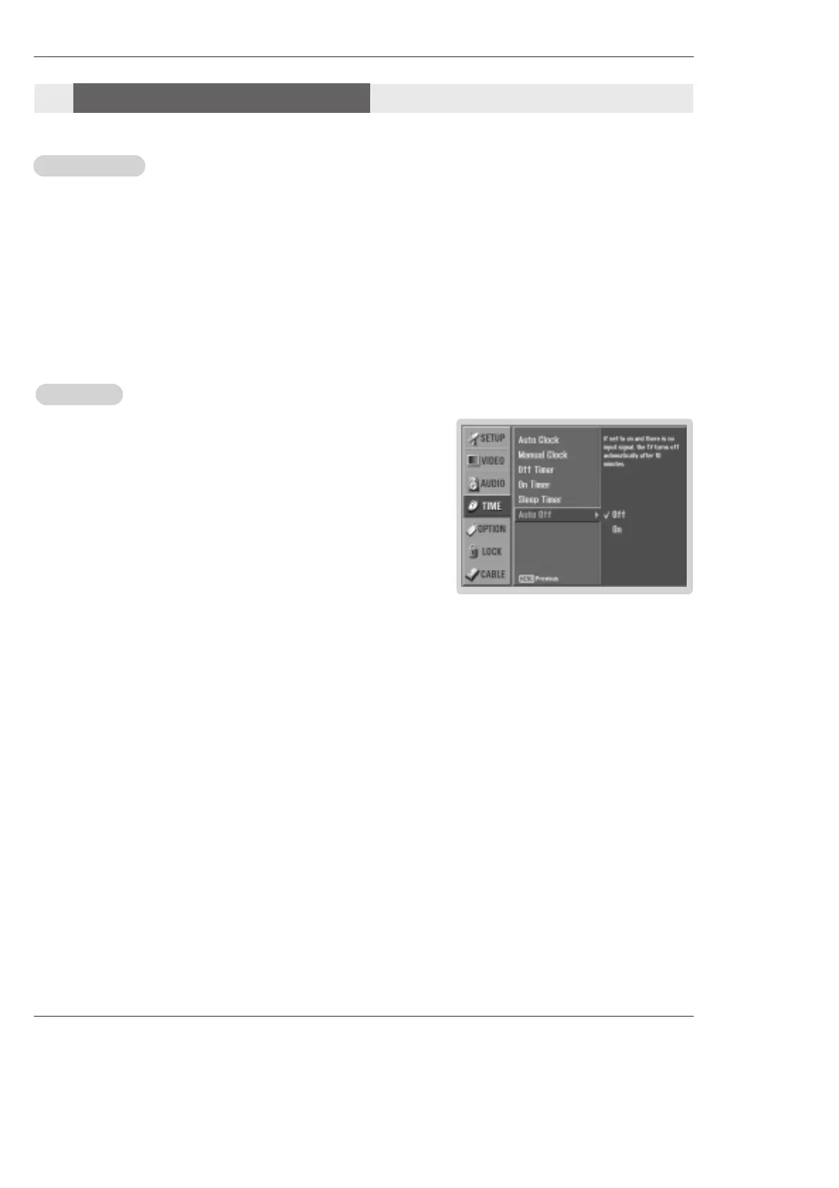 - If set to on and there is no input signal, the TV turns off automatically after 10