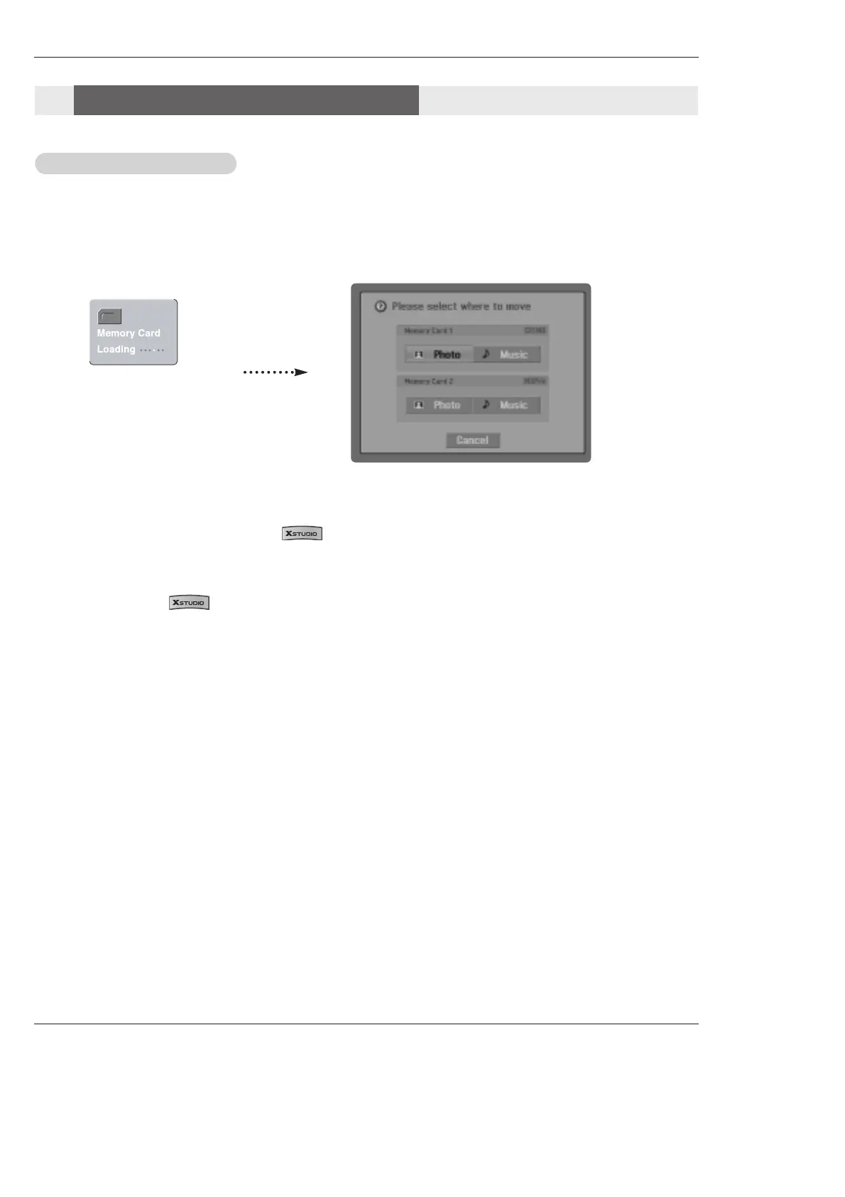 / F / G button to select either Photo or Music on Memory Card 1 or Memory Card 2.