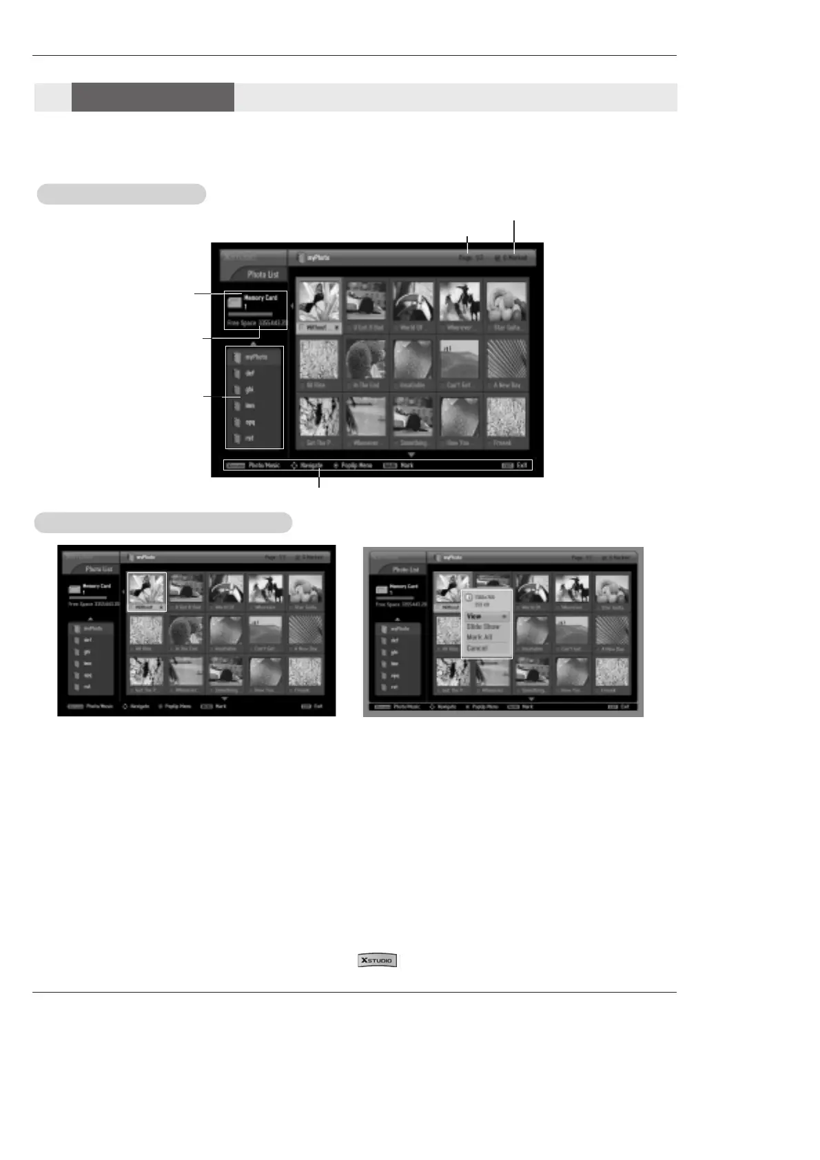 2. Use MARK button to mark or unmark a photo. When one or more photos are marked, you can view or slideshow only