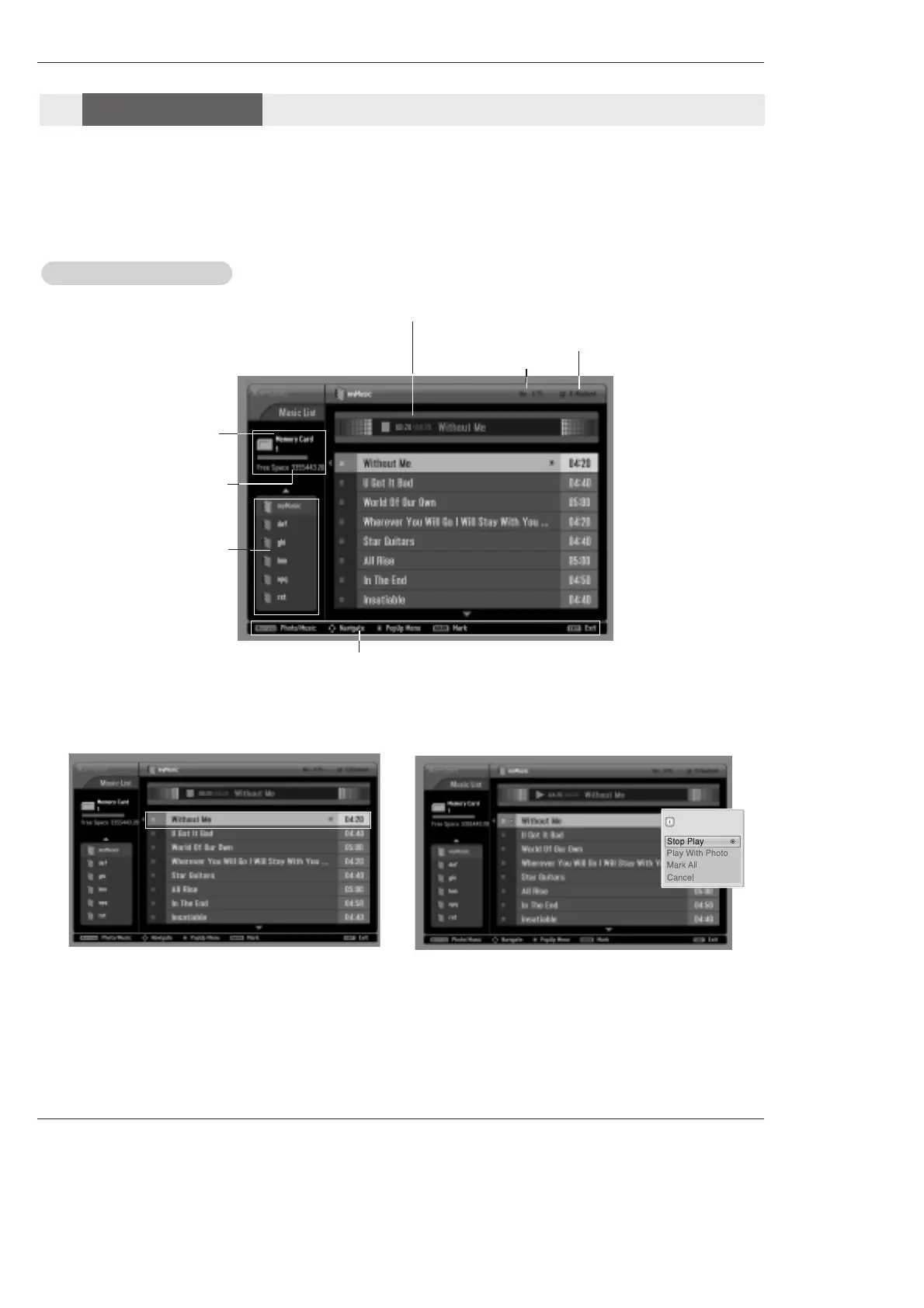 - When you select Music in the entry menu, you will now see a screen filled with music titles.