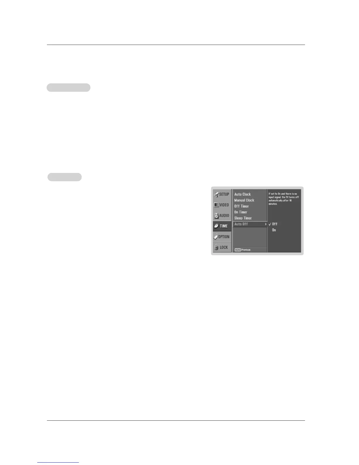 - If set to on and there is no input signal, the TV turns off automatically after 10