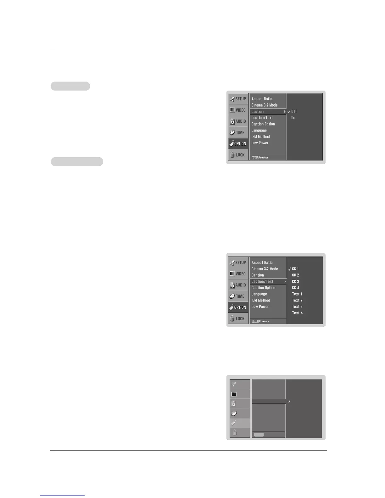 1. Use the CC button repeatedly to select Caption CC1, CC2, CC3, CC4, Text1, Text2, Text3, or Text4.