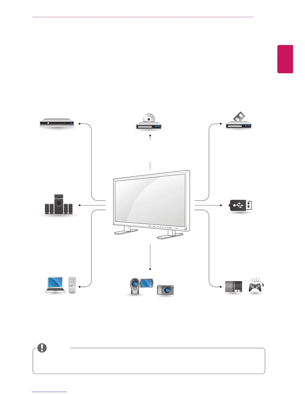 ConnectvariousexternaldevicestotheportsontheMonitorset’sbackpanel.