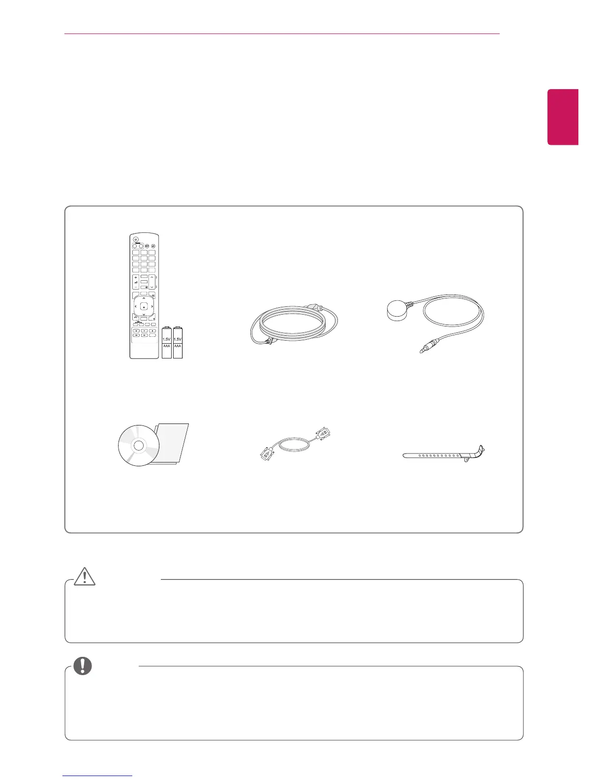 Check your product box for the following items. If there are any missing accessories, contact the local
