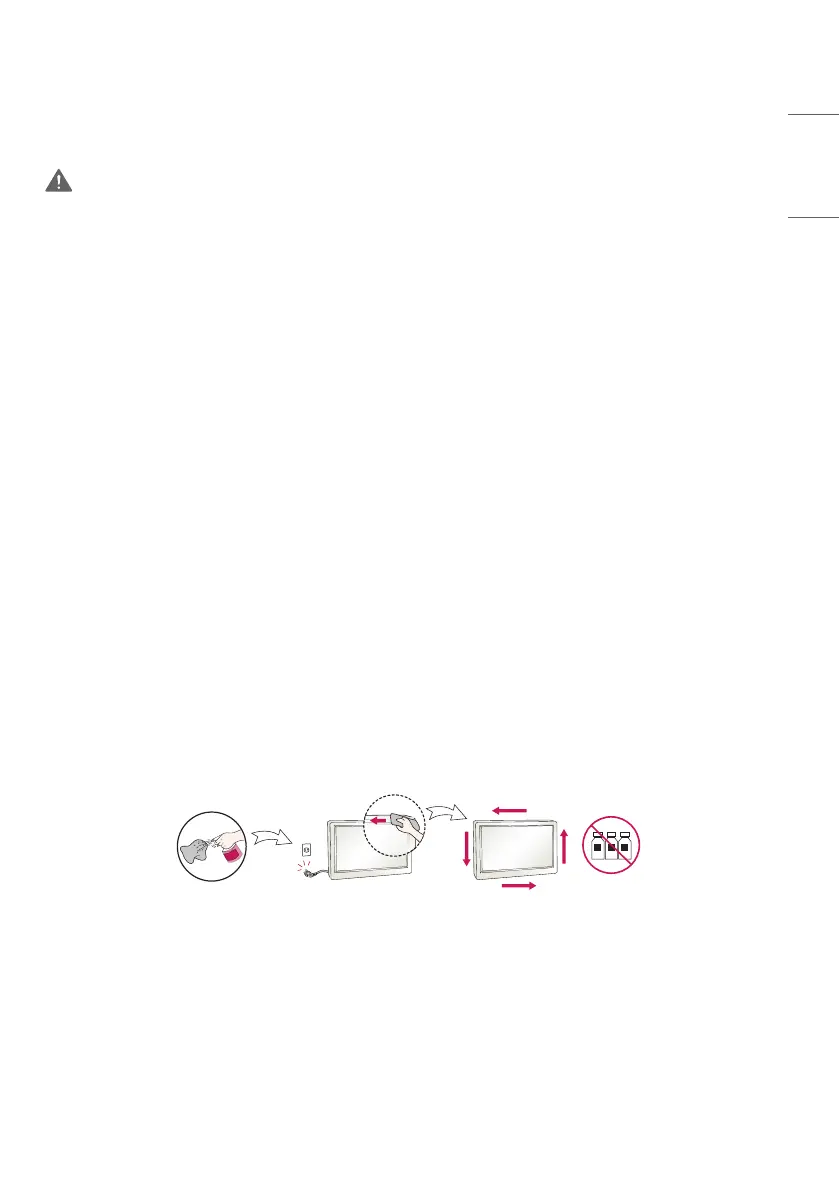 • Do not press on the panel with a hand or sharp object such as nail, pencil or pen, or make a scratch on it.