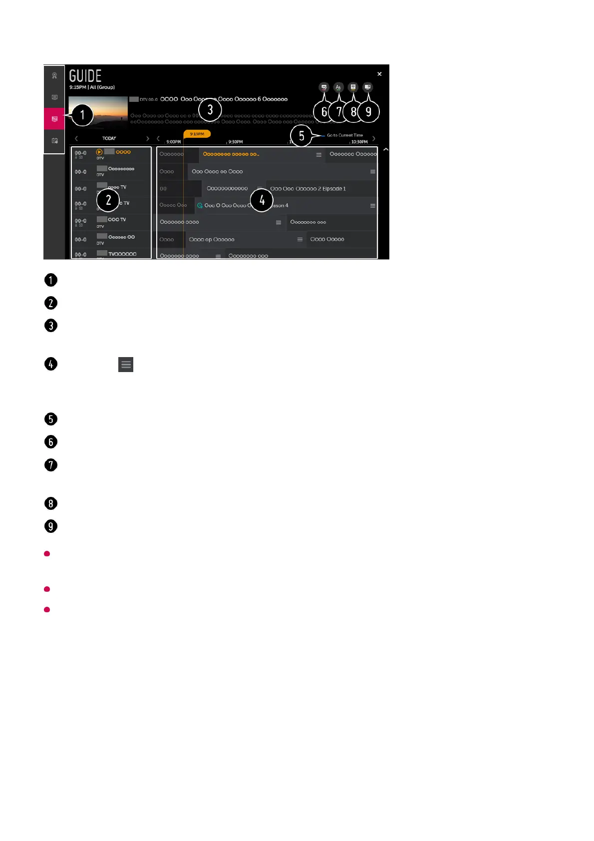 REMINDER / SCHEDULED RECORDING (only available on certain models), etc.