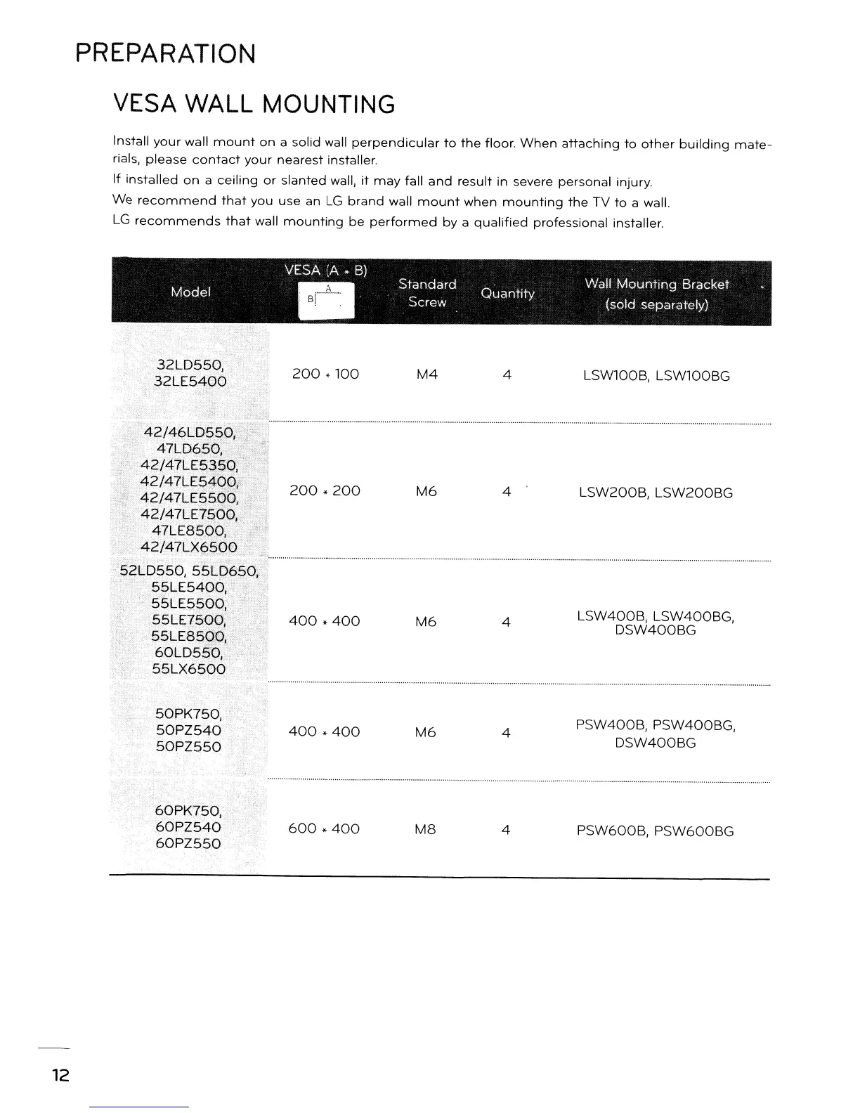 LG 46LD550 - VESA Wall Mounting