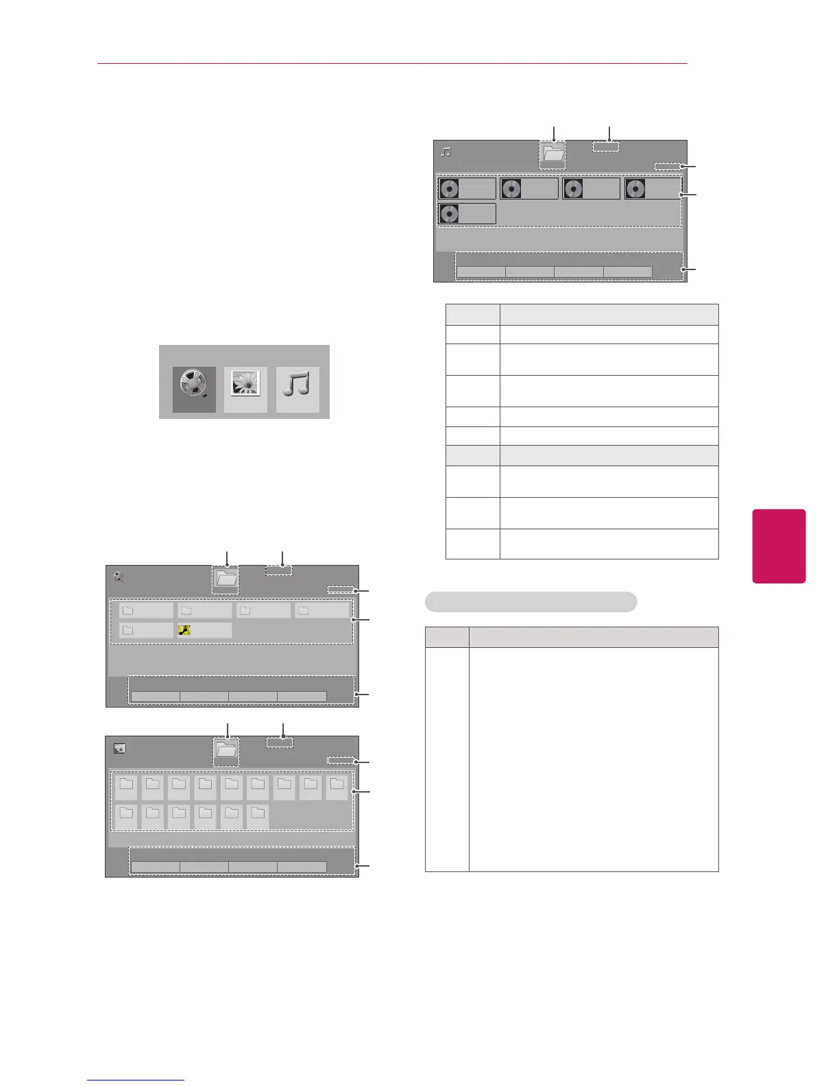 Access the photo, music, or movie lists and