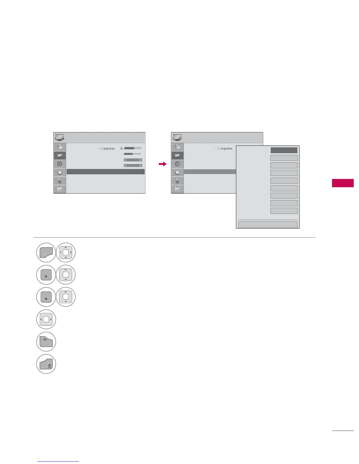 To reset to the factory default after making adjustments to each input source, execute the Picture