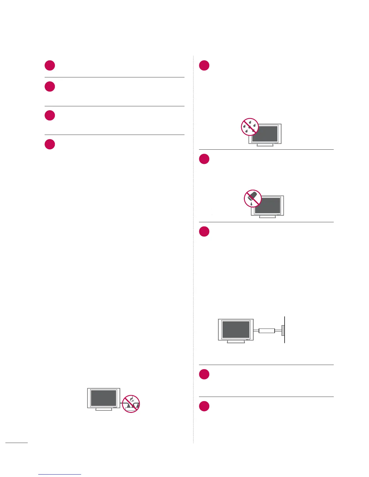 the TV with wet hands. Do not install this