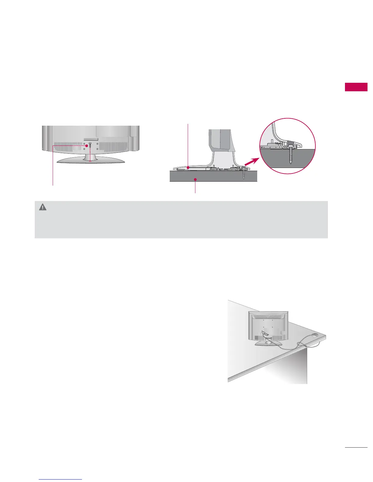 The TV must be attached to a desk so it cannot be pulled in a forward/backward direction, poten-
