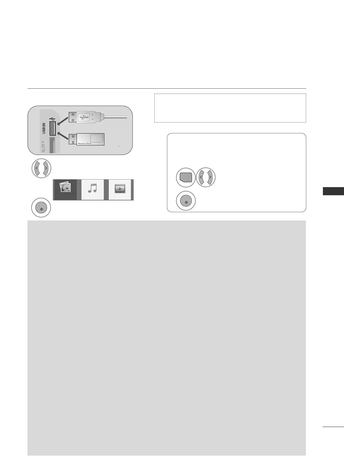 When the Pop Up menu does not appear, you can select Music List, Photo List or Movie List in the USB