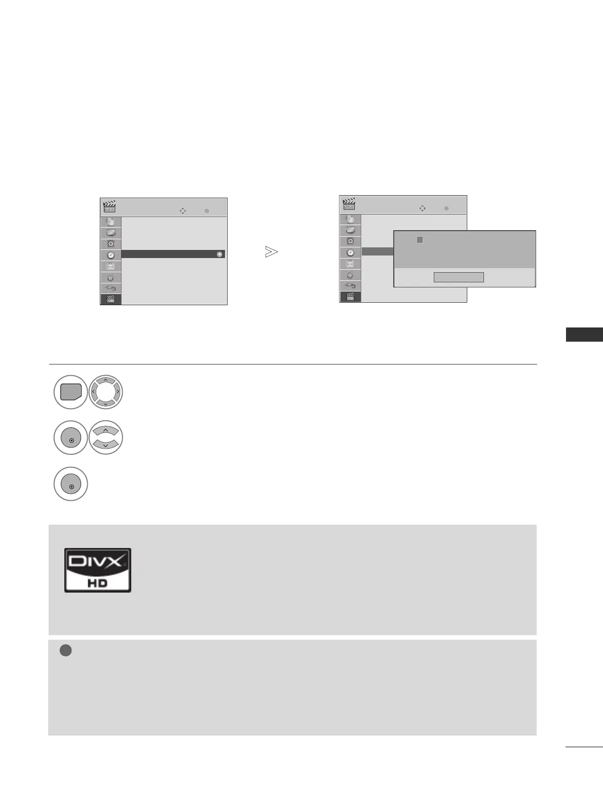 With a DivX registration code from other TV, playback of rented or purchased DivX file is not allowed. (Only DivX