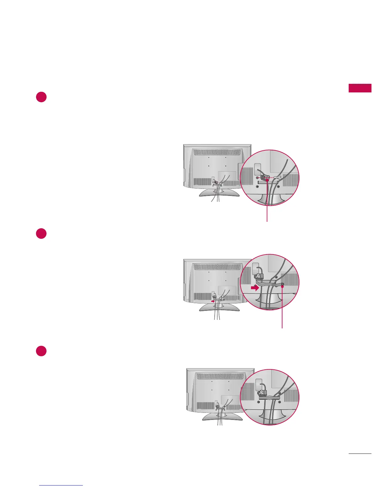 For 55LH400C: Secure the power cable with the PROTECTIVE BRACKET and SCREW as shown.