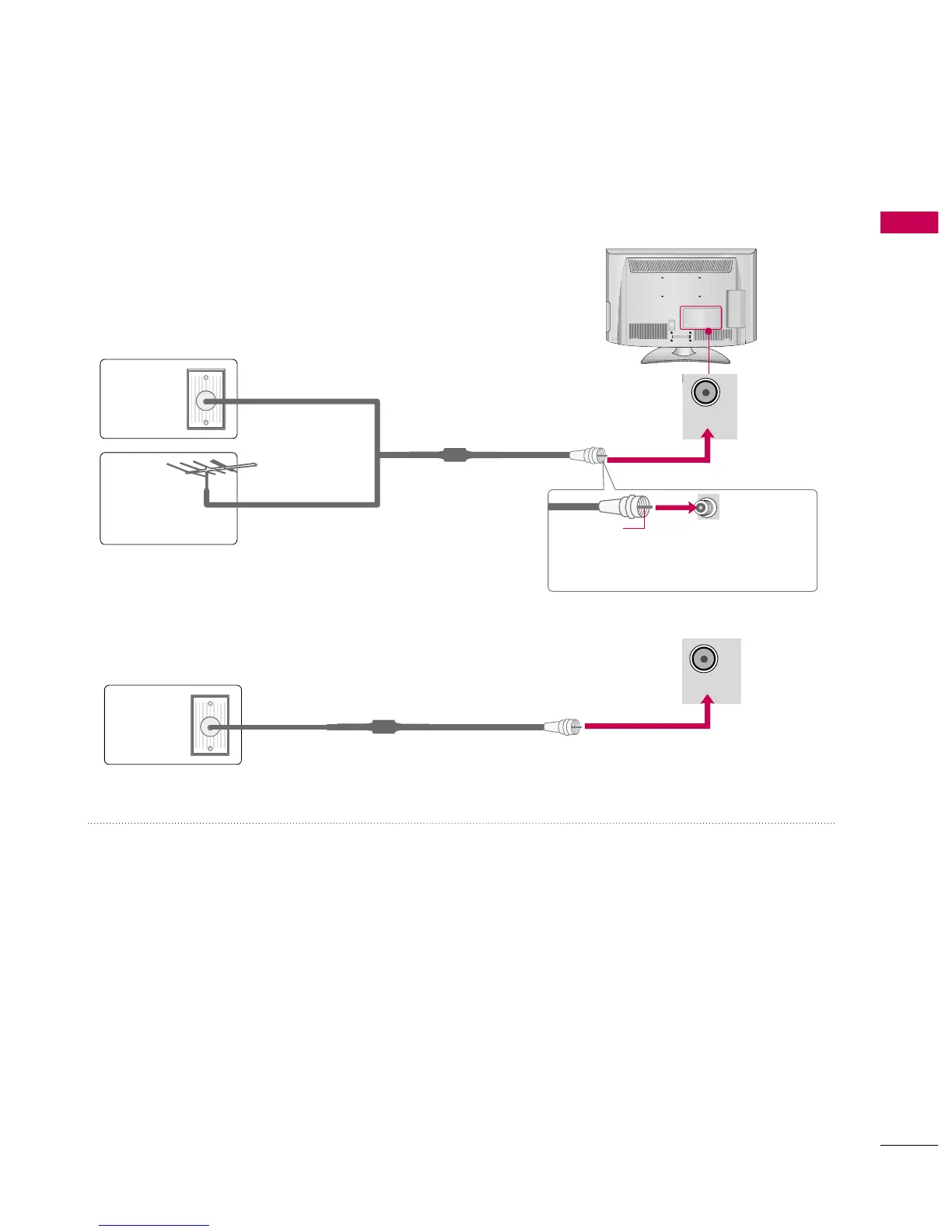 If the antenna needs to be split for two TV’s, install a 2-Way Signal Splitter.
