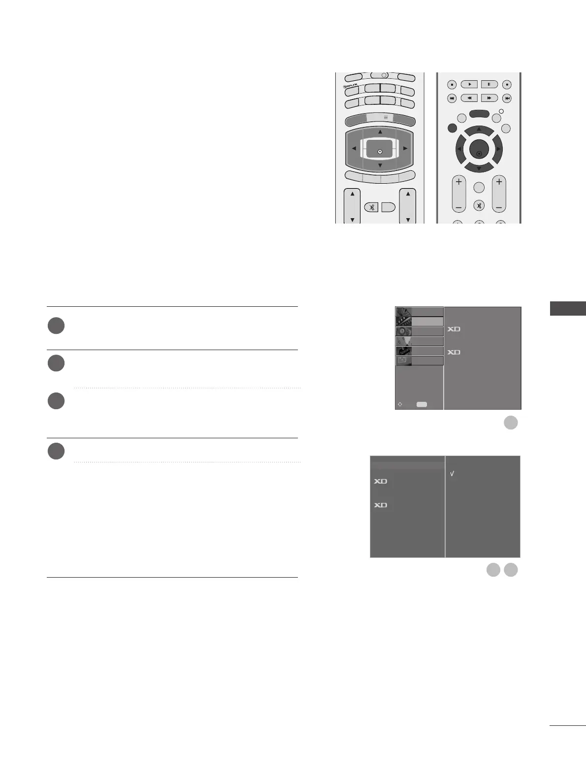 Mode menu based on the programme category.