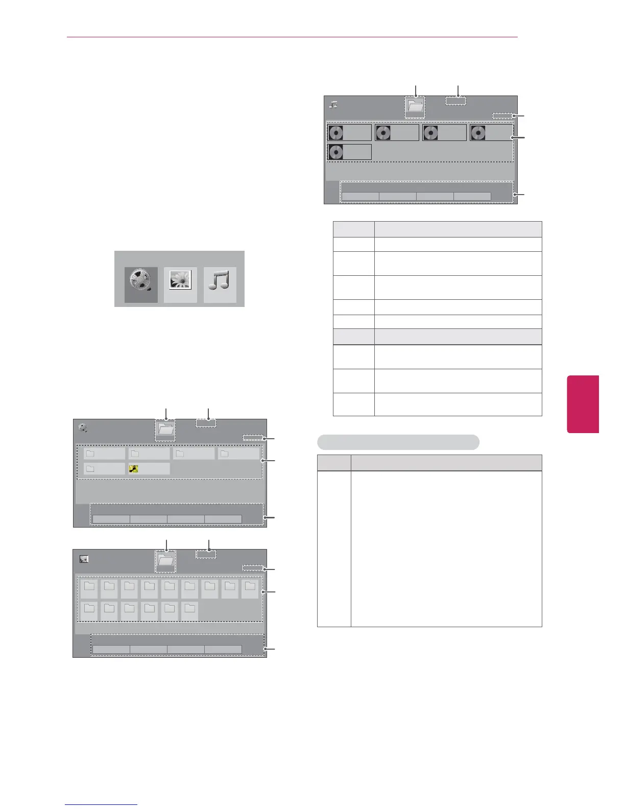 Access the photo, music, or movie lists and