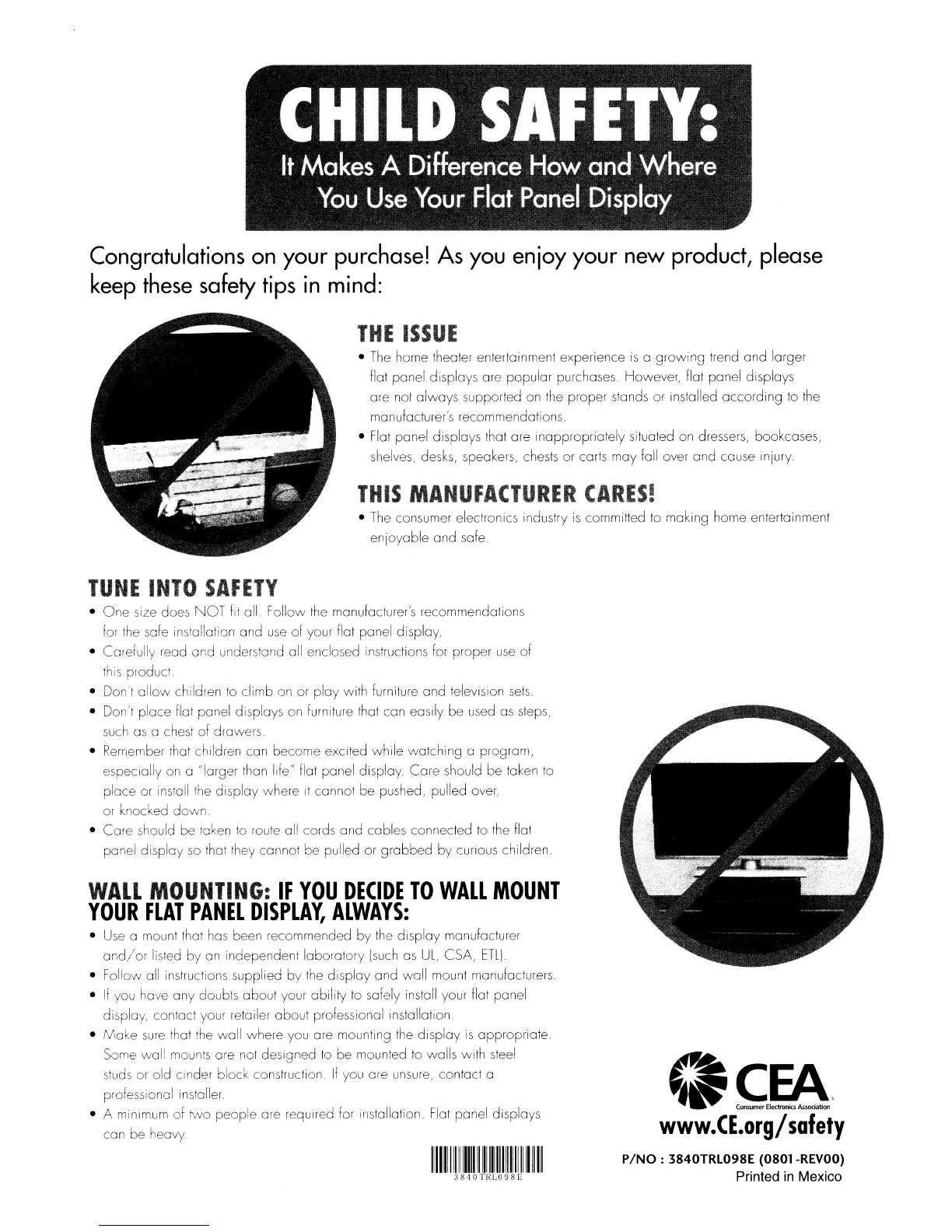 display, contact your retailer about professional installation
