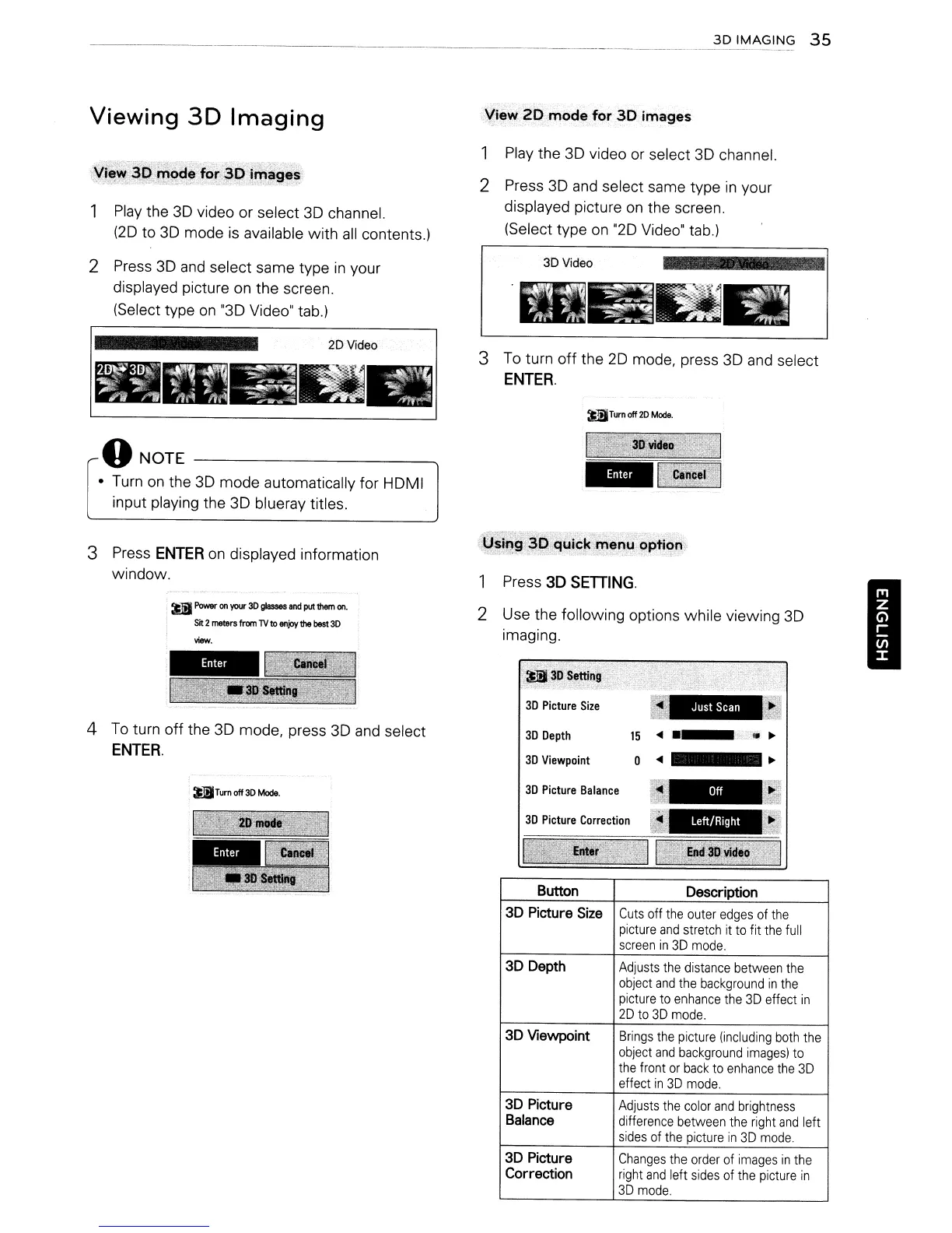 2 Use the following options while viewing 3D