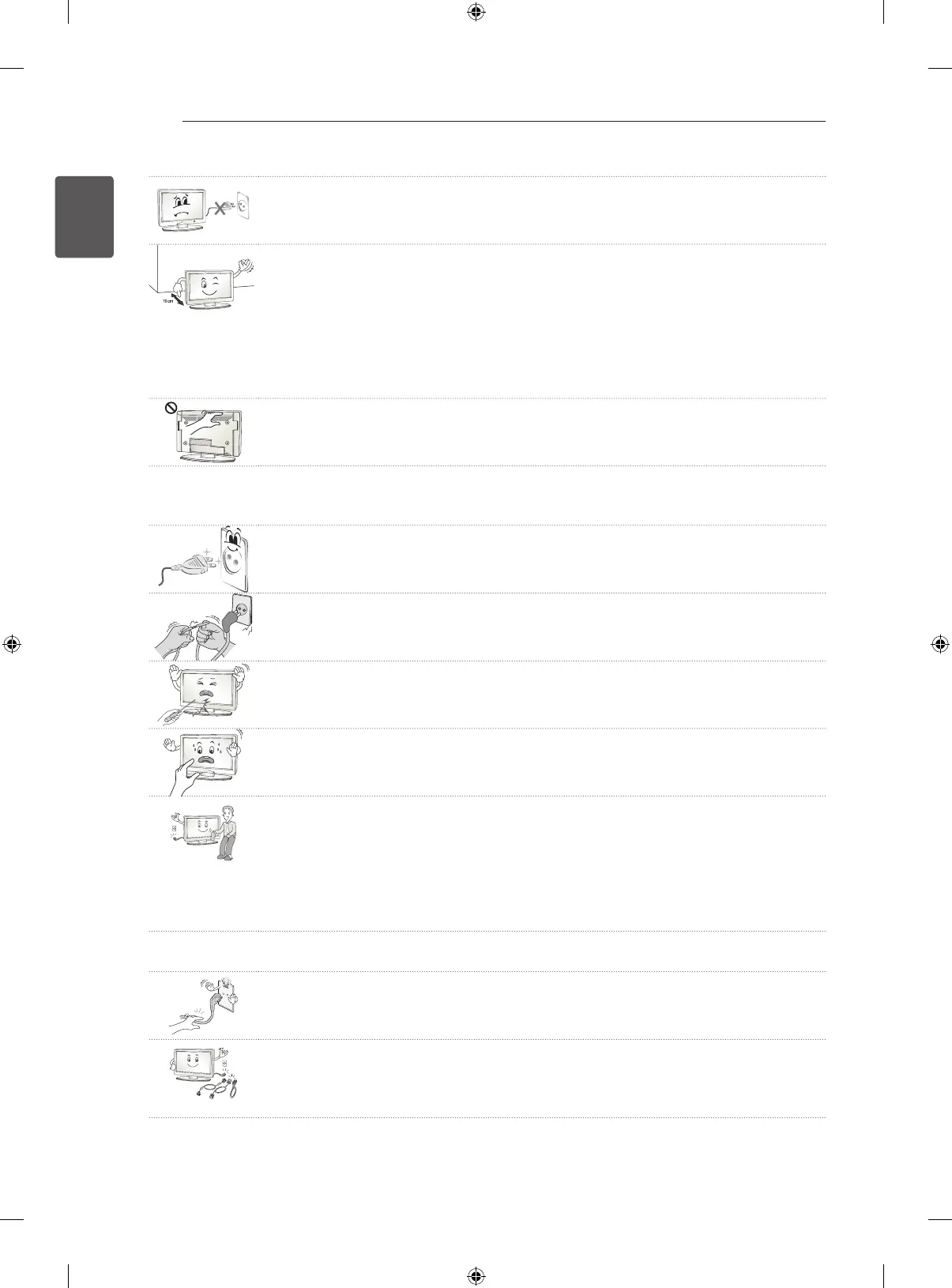Otherwise, this may result in fire, electric shock or product damage (deformation,
