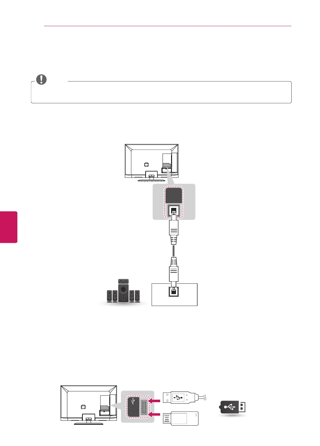 Transmits a digital audio signal from the TV to an external device. Connect the external device and the TV