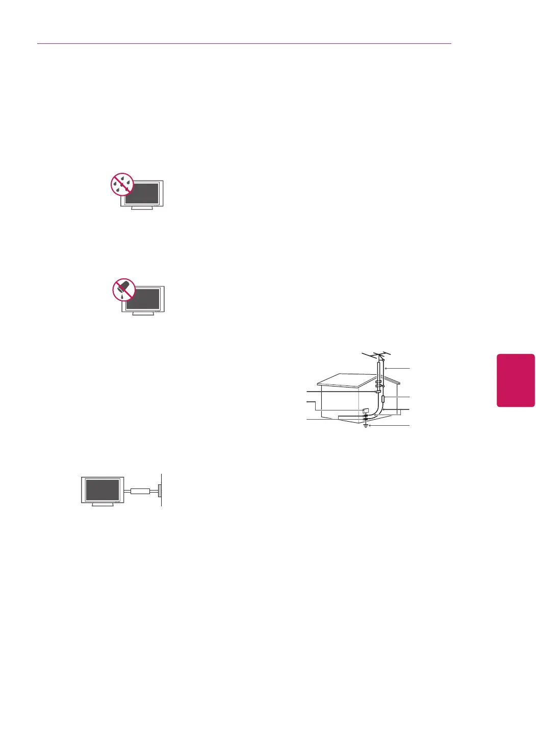 touch the TV with wet hands. Do not install