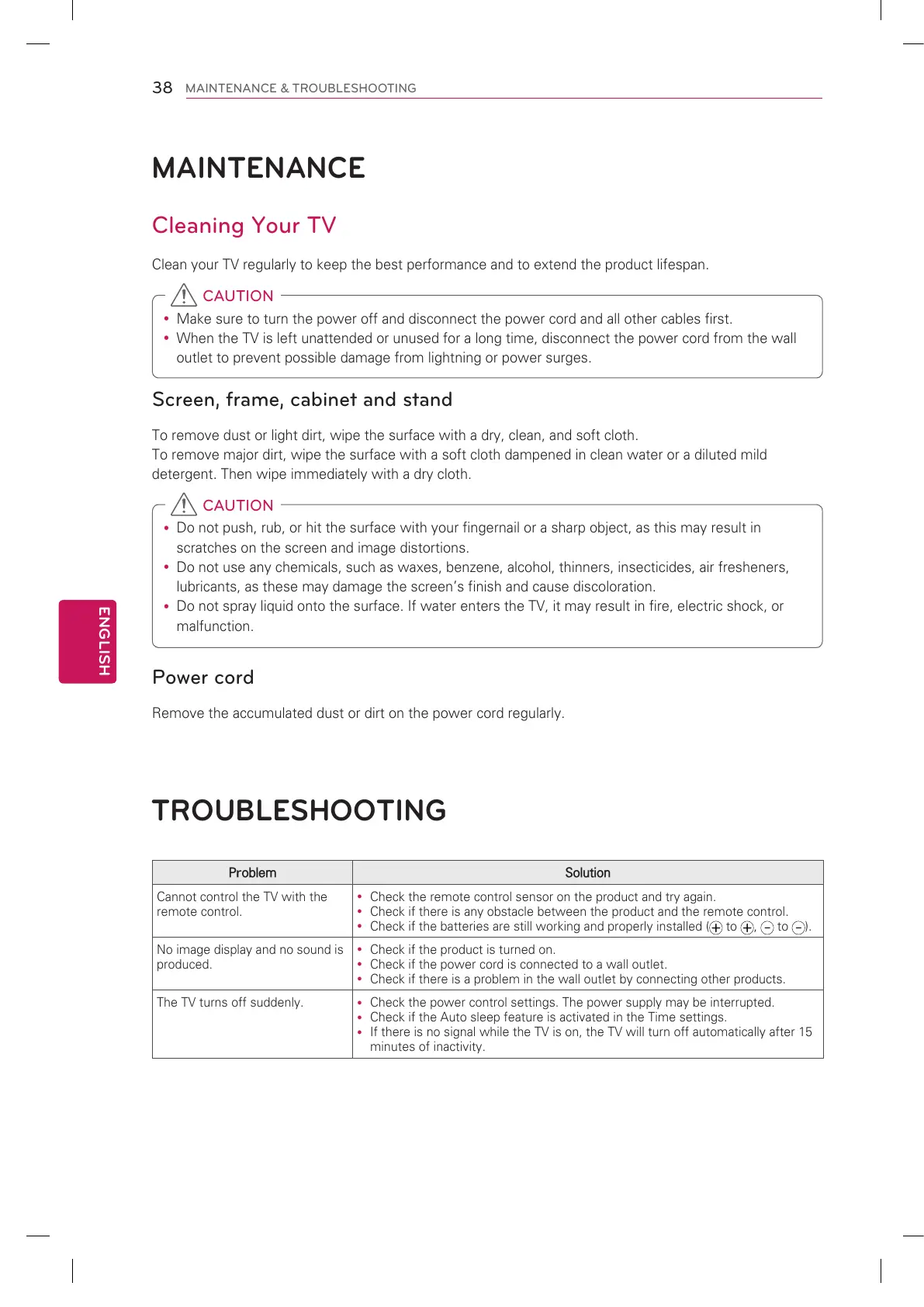 Clean your TV regularly to keep the best performance and to extend the product lifespan.