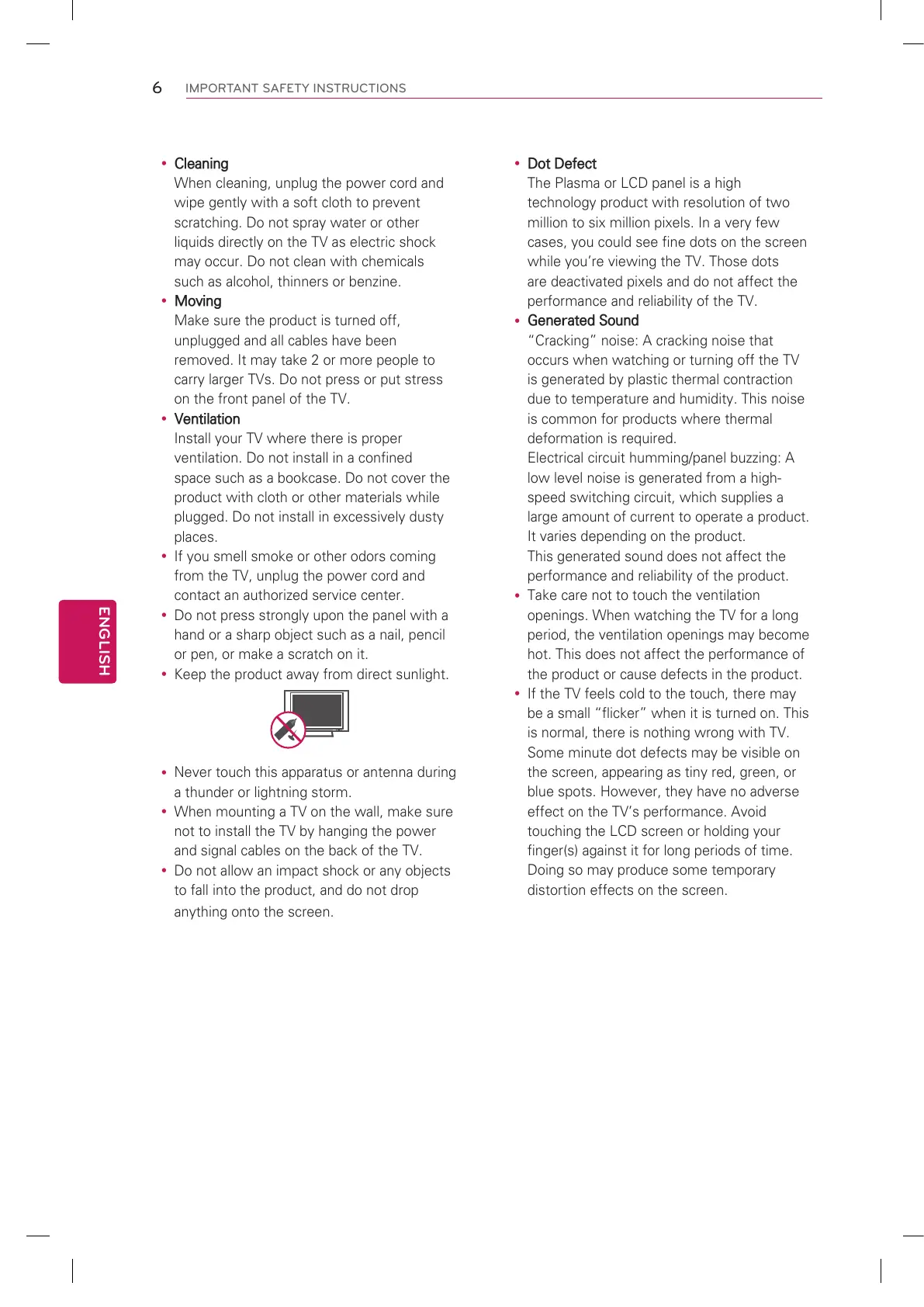 effect on the TV’s performance. Avoid