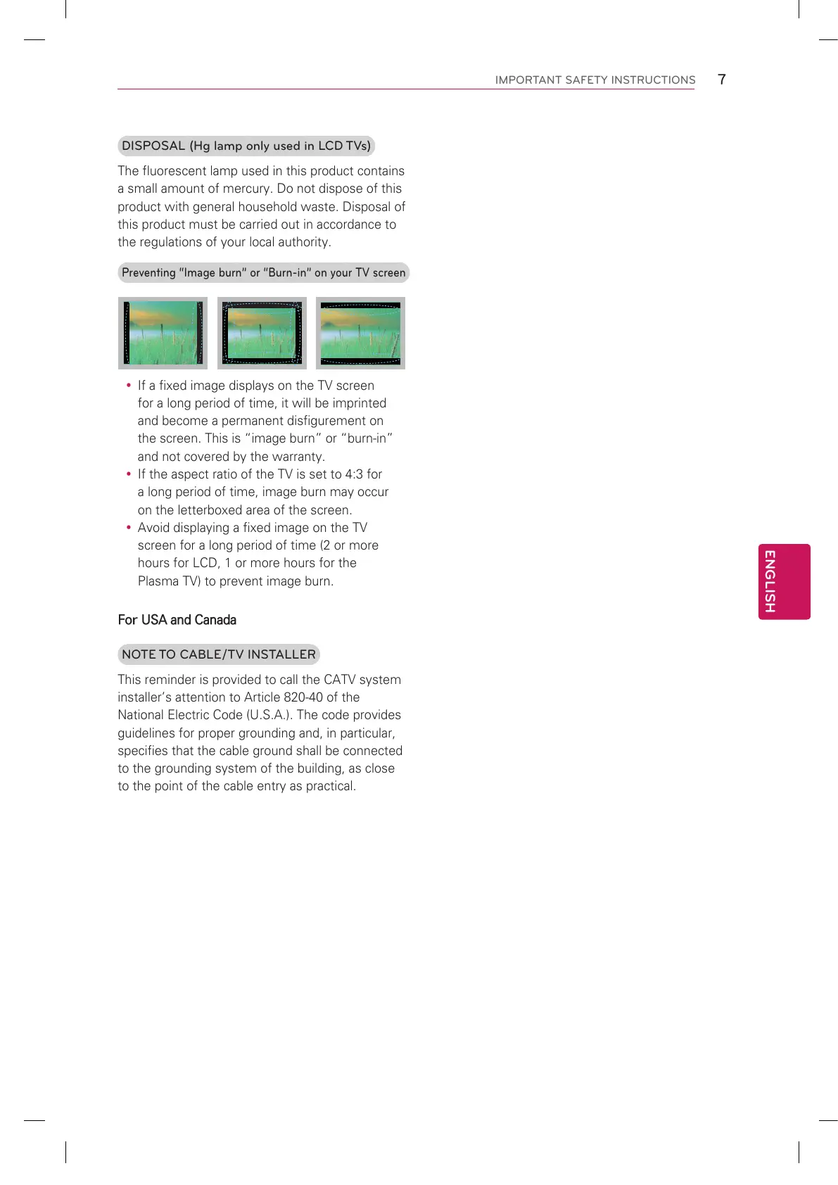 DISPOSAL (Hg lamp only used in LCD TVs)