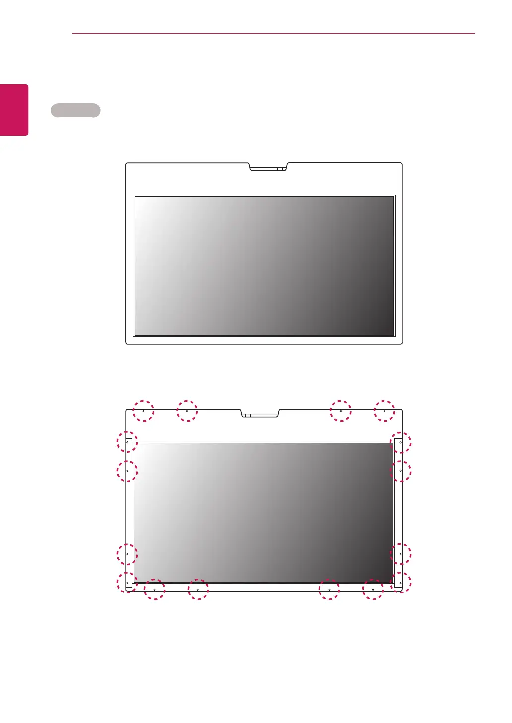 UseM3x4mmscrewstomountthemonitor.Thereare16positionsforscrewsontherearsideofthe