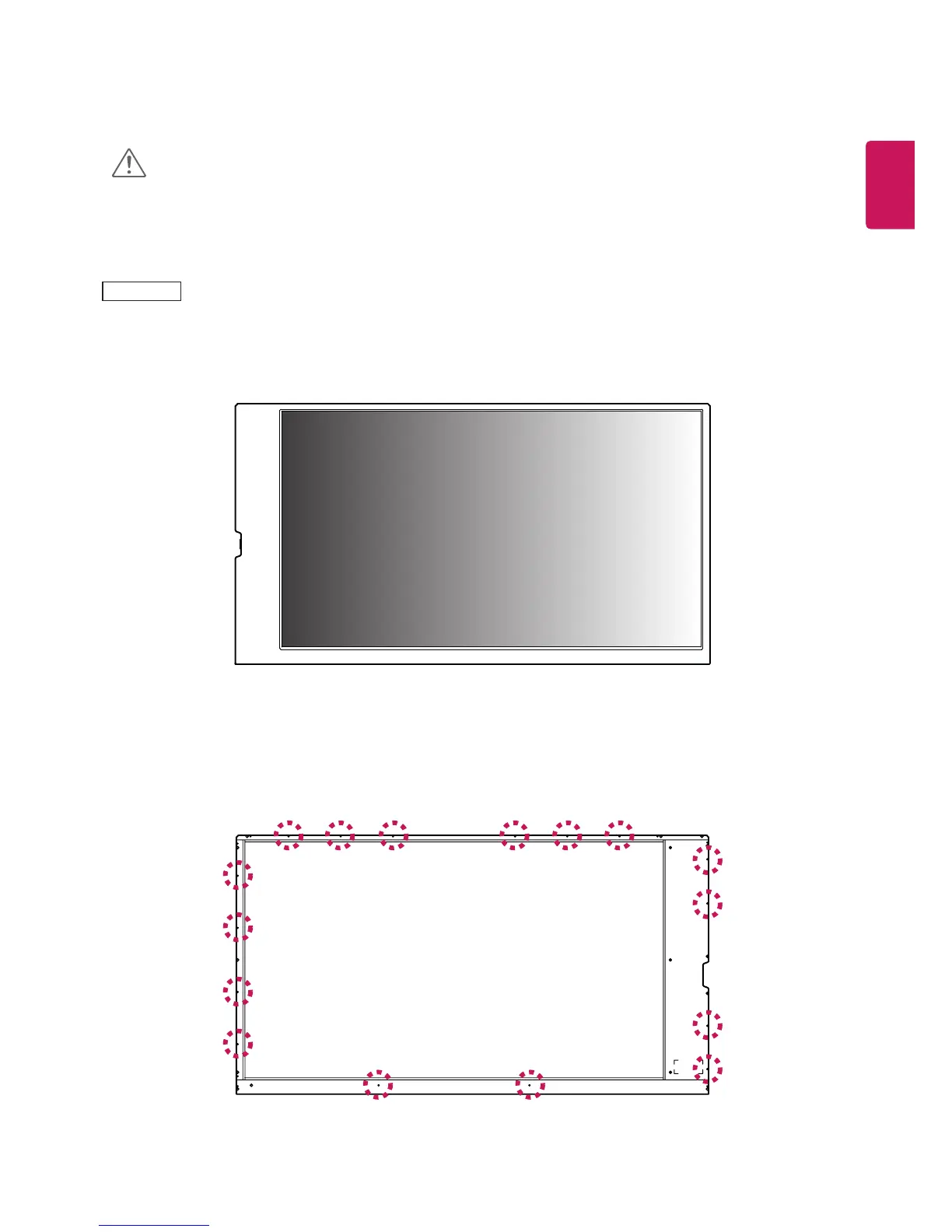Use M3 screws to mount the monitor. There are 16 positions for screws on the rear side of the product.