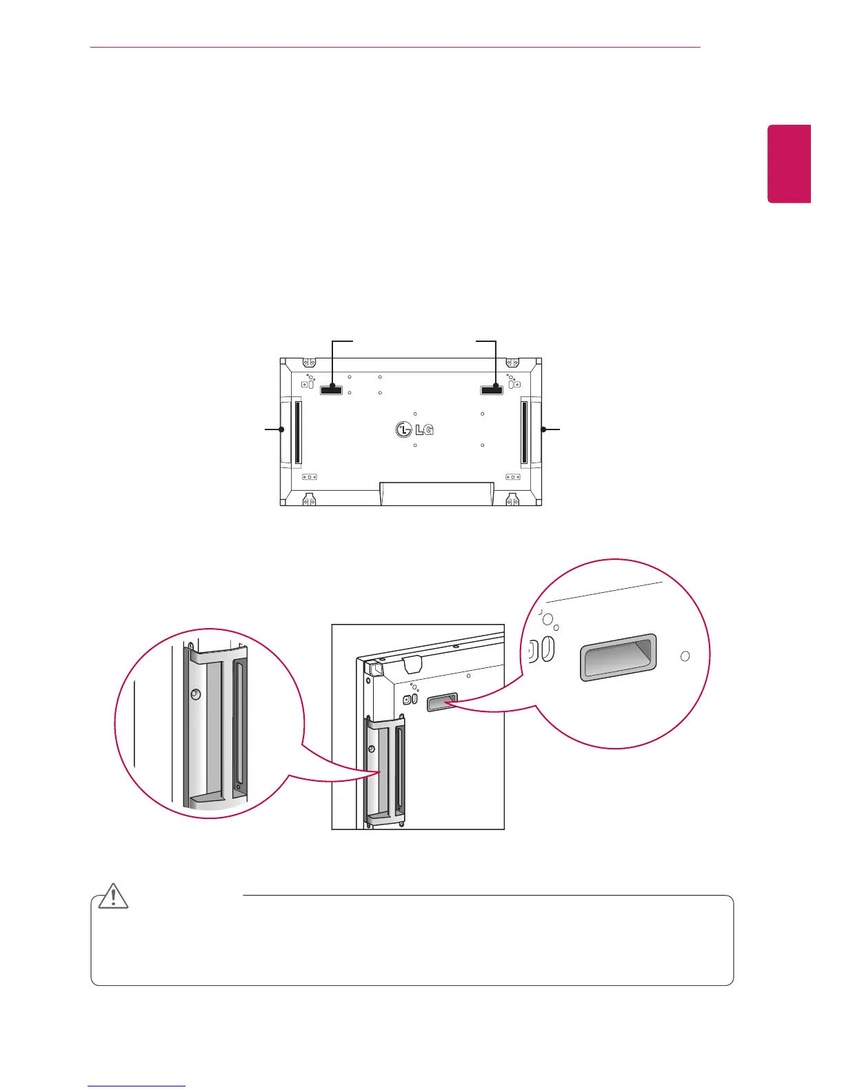 Hold the monitor with the handles as the corners of the front panel are sharp, which may cause an
