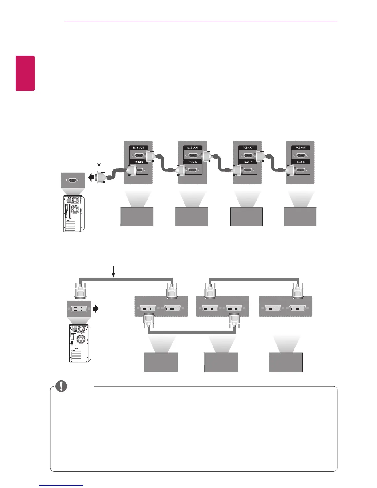 y If input signals are received through the HDMI/DP cable, multiple monitors cannot be connected via