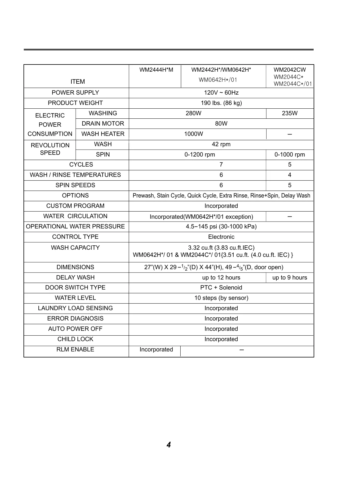 WM0642H*/ 01 & WM2044C*/ 01{3.51 cu.ft. (4.0 cu.ft. IEC) }