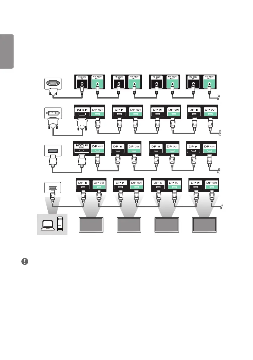 To use multiple monitors connected to each other, connect the end of the signal input cable (DP cable) to the DP OUT