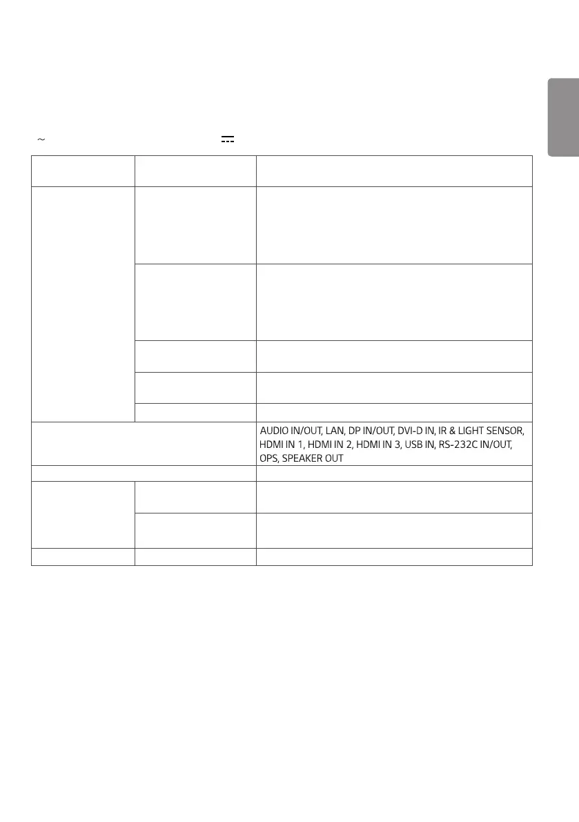 Horizontal frequency DVI-D/ HDMI/ DisplayPort/ OPS (PC): 30 kHz to 83 kHz