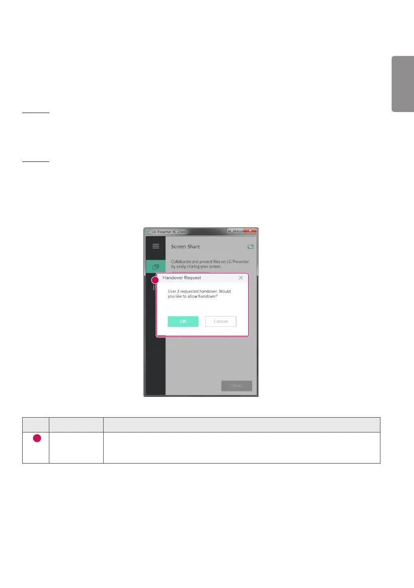 1 When the hand over request pop-up appears on PC2, select whether to approve or deny the request.