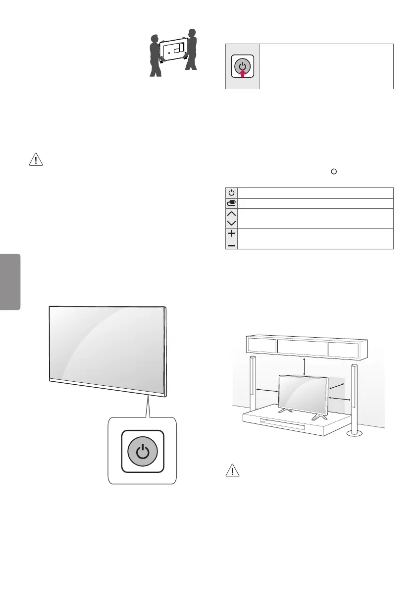 • When transporting the TV, keep the TV upright;