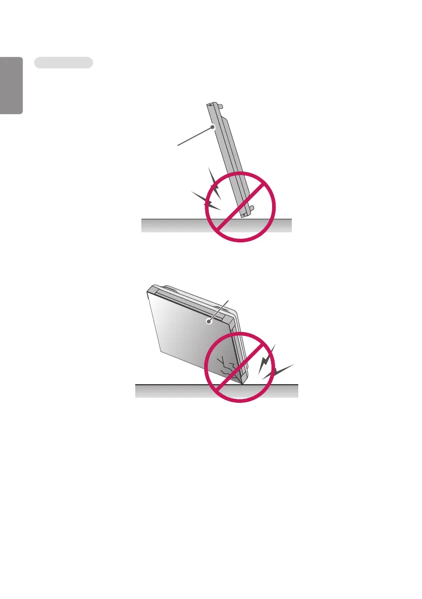2 If the product is tilted onto the edge of the panel, the panel may be damaged.