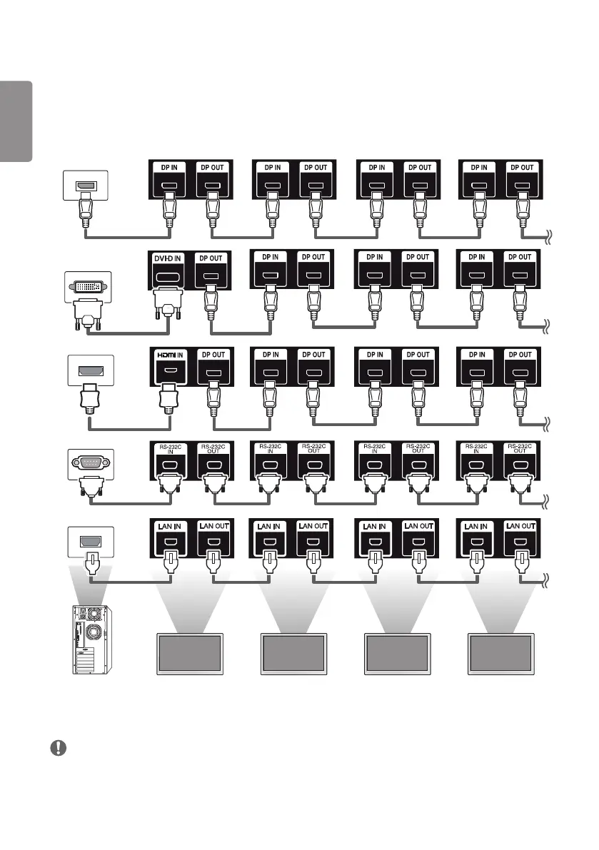 To use different products connected to each other, connect one end of the signal input cable (DP Cable) to the DP Out