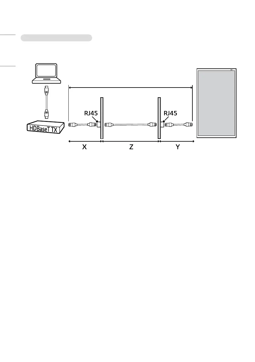 The total run of an HDBaseT cable installation may include up to two patch cables. This is referred to as a three-
