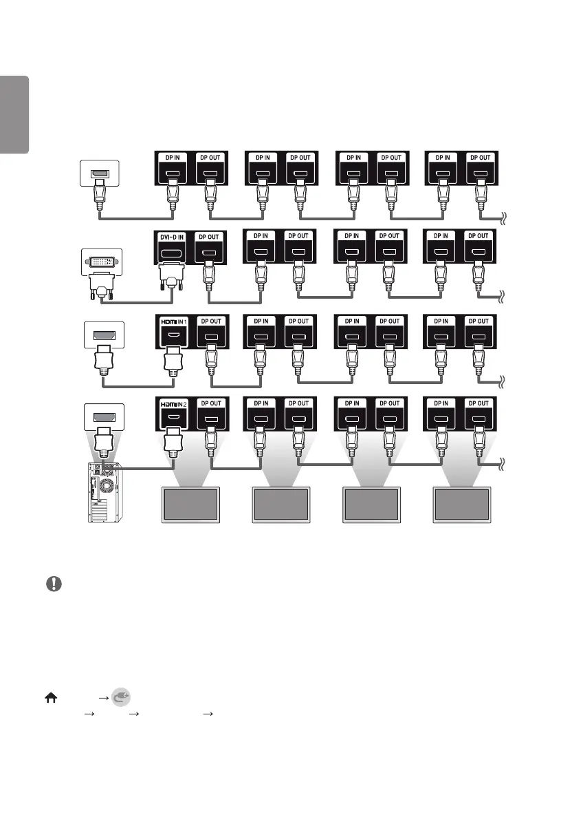 To use different products connected to each other, connect one end of the signal input cable (DP Cable) to the DP Out