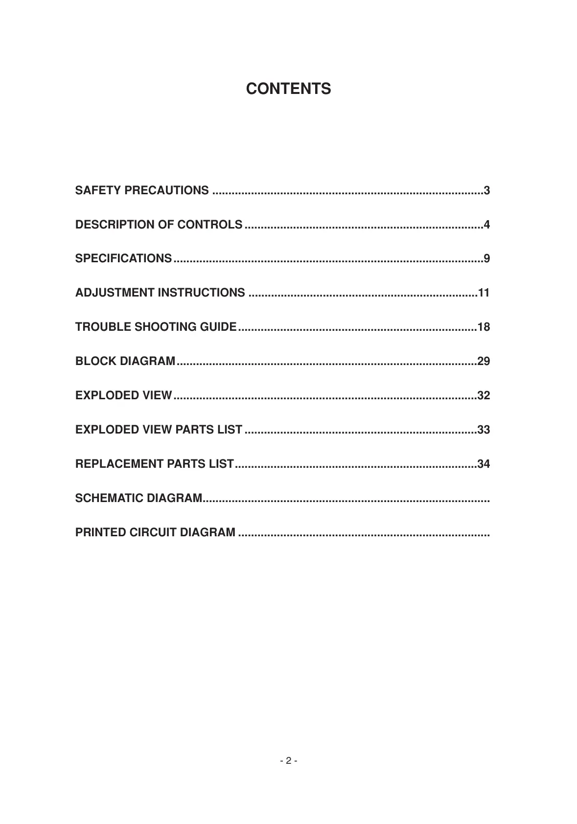 REPLACEMENT PARTS LIST...........................................................................34