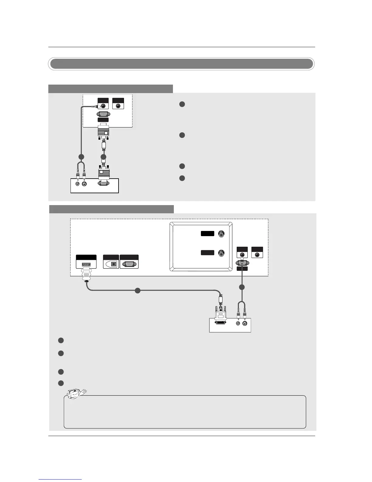 • If the PC has a DVI output and no HDMI output, a separated audio connection is necessary.