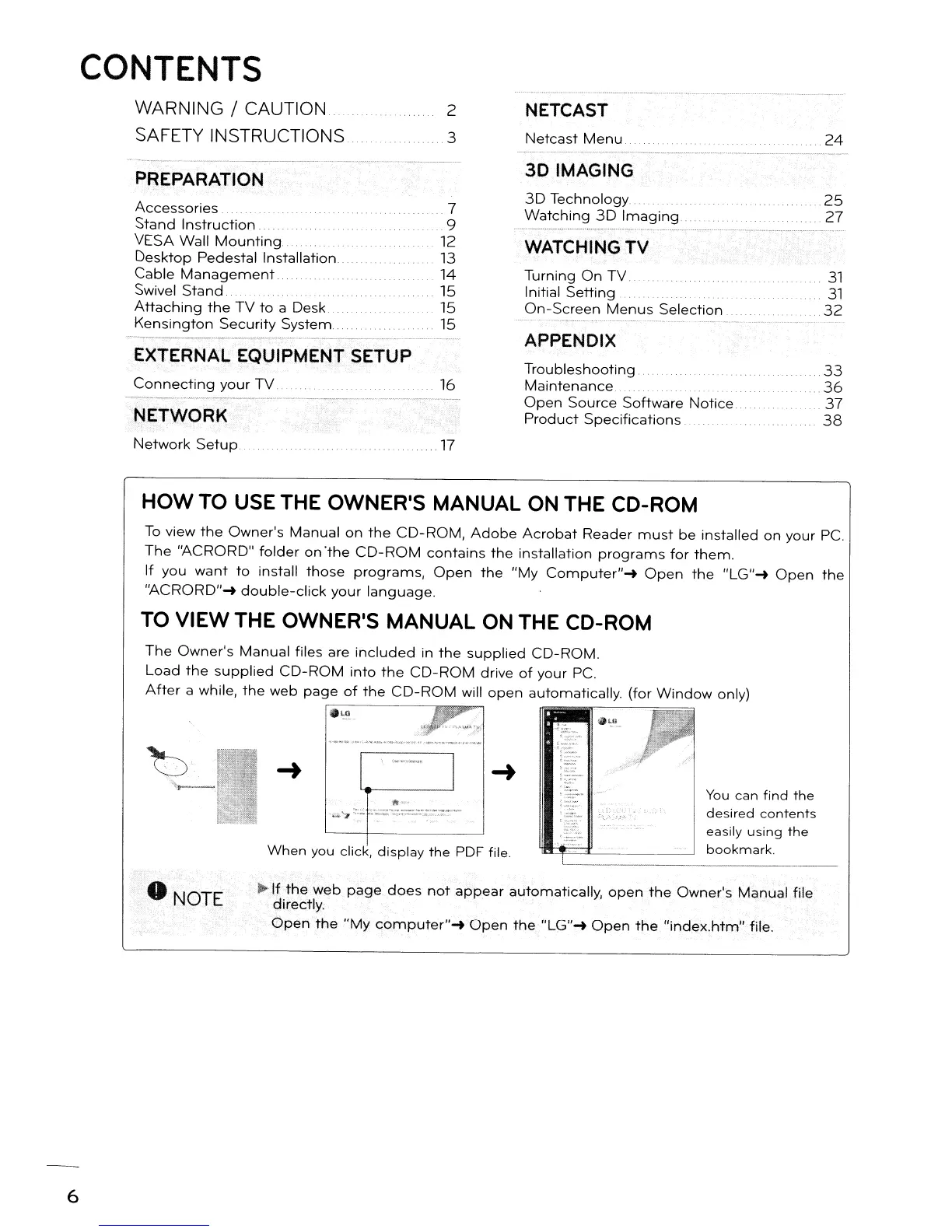 LG 52LD550 - Table of Contents