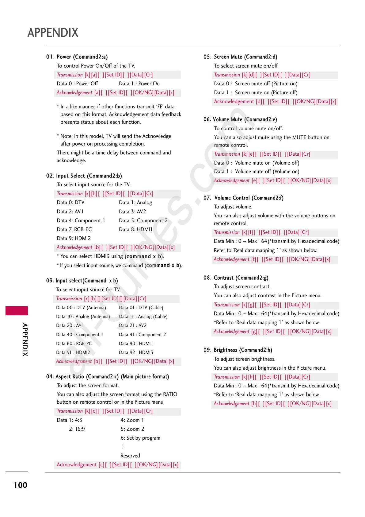 Acknowledgement [g][ ][Set ID][ ][OK/NG][Data][x]