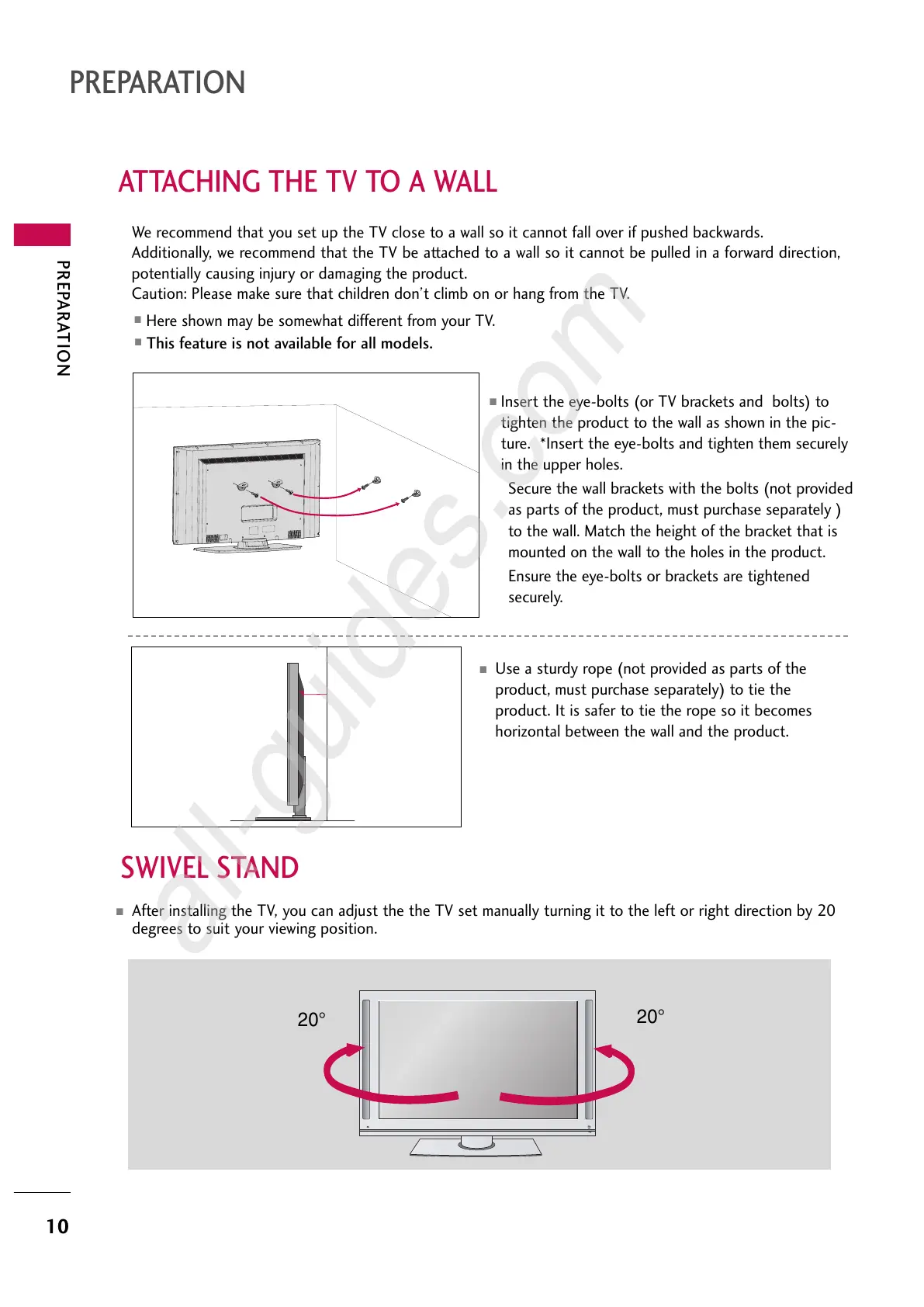 After installing the TV, you can adjust the the TV set manually turning it to the left or right direction by 20